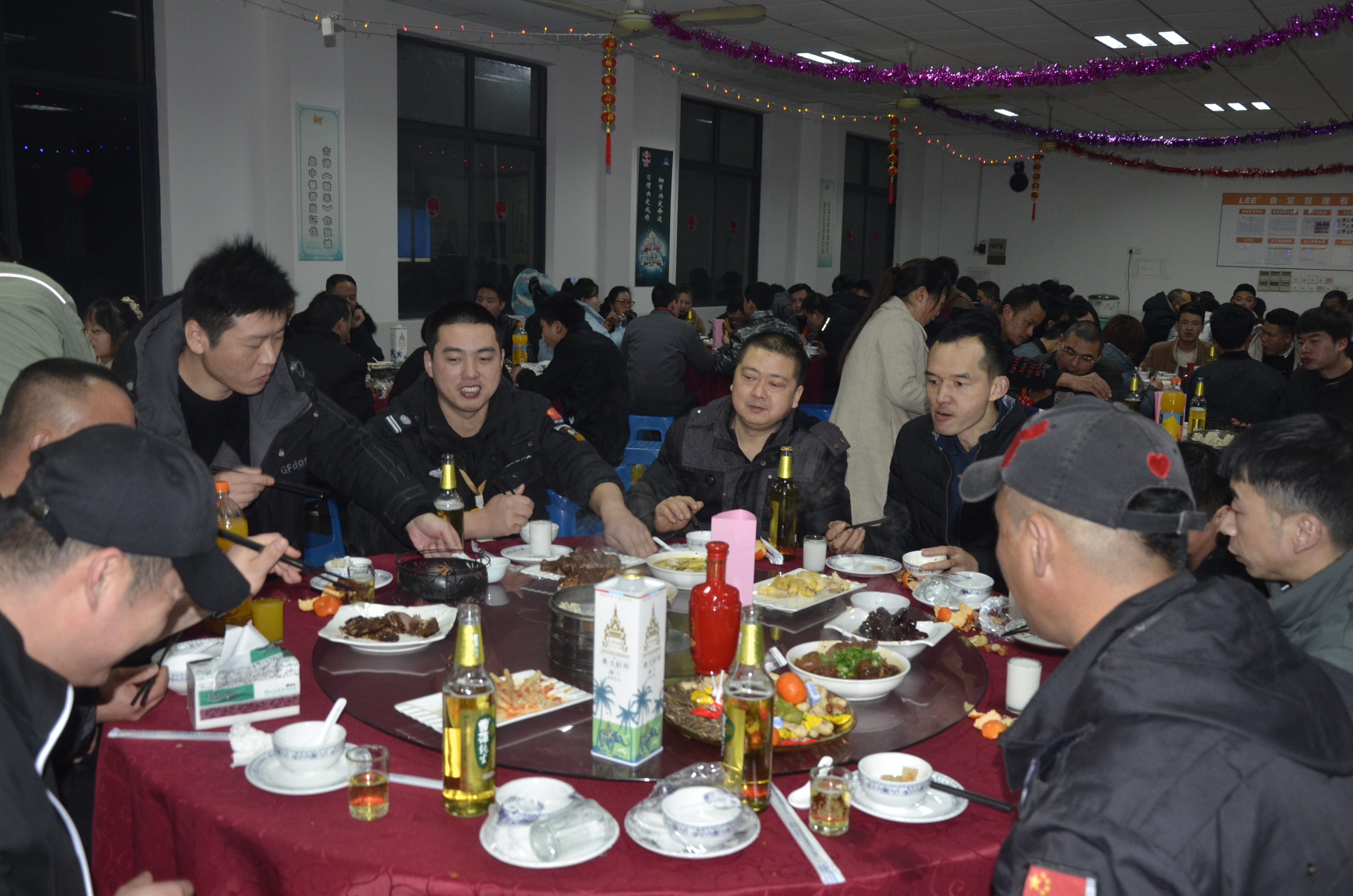 德福公司為廣大留平職工在飯店準備年夜飯,公司領導陪著員工邊吃邊聊家常,并與部分員工家屬通話拜年。