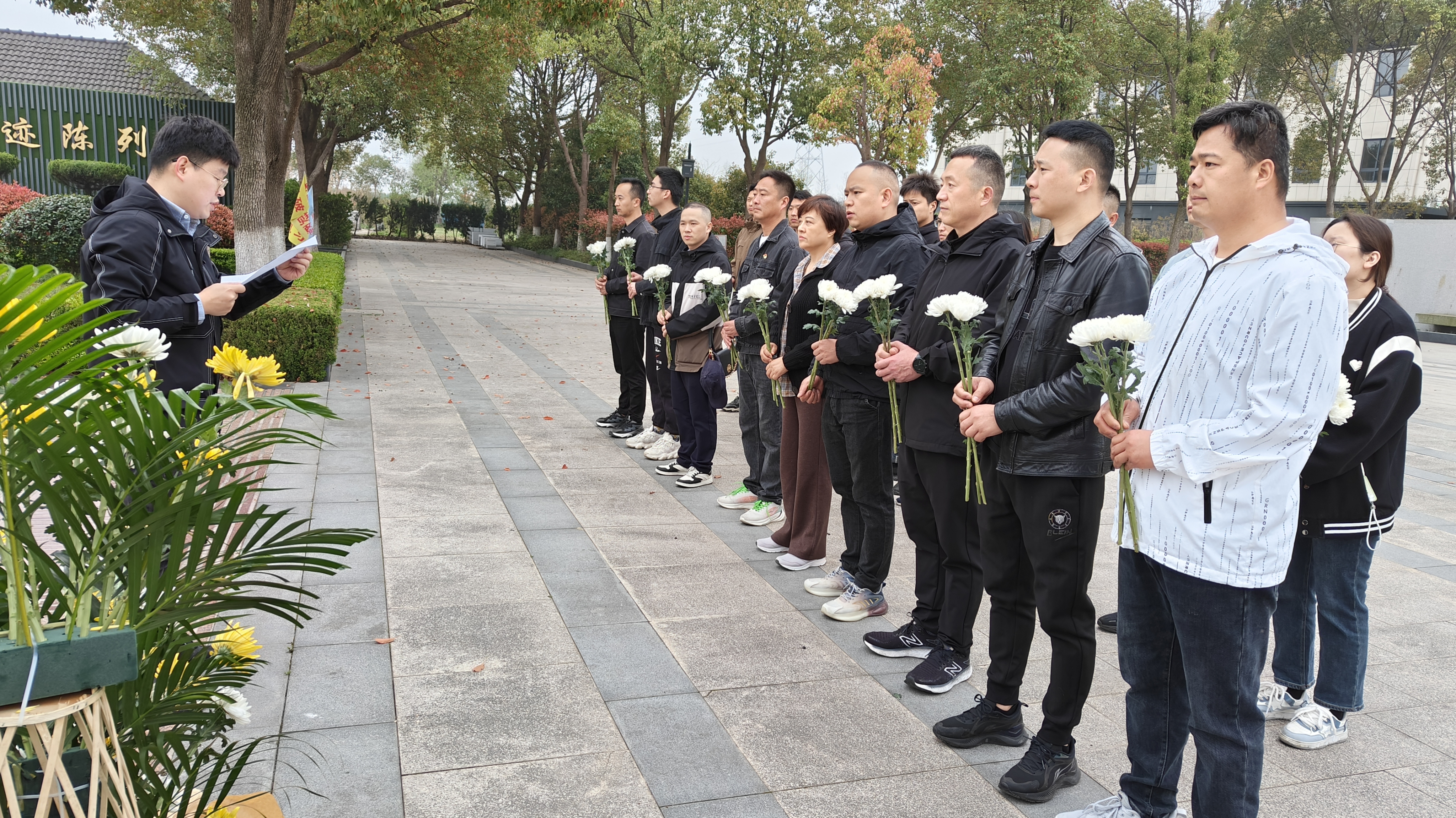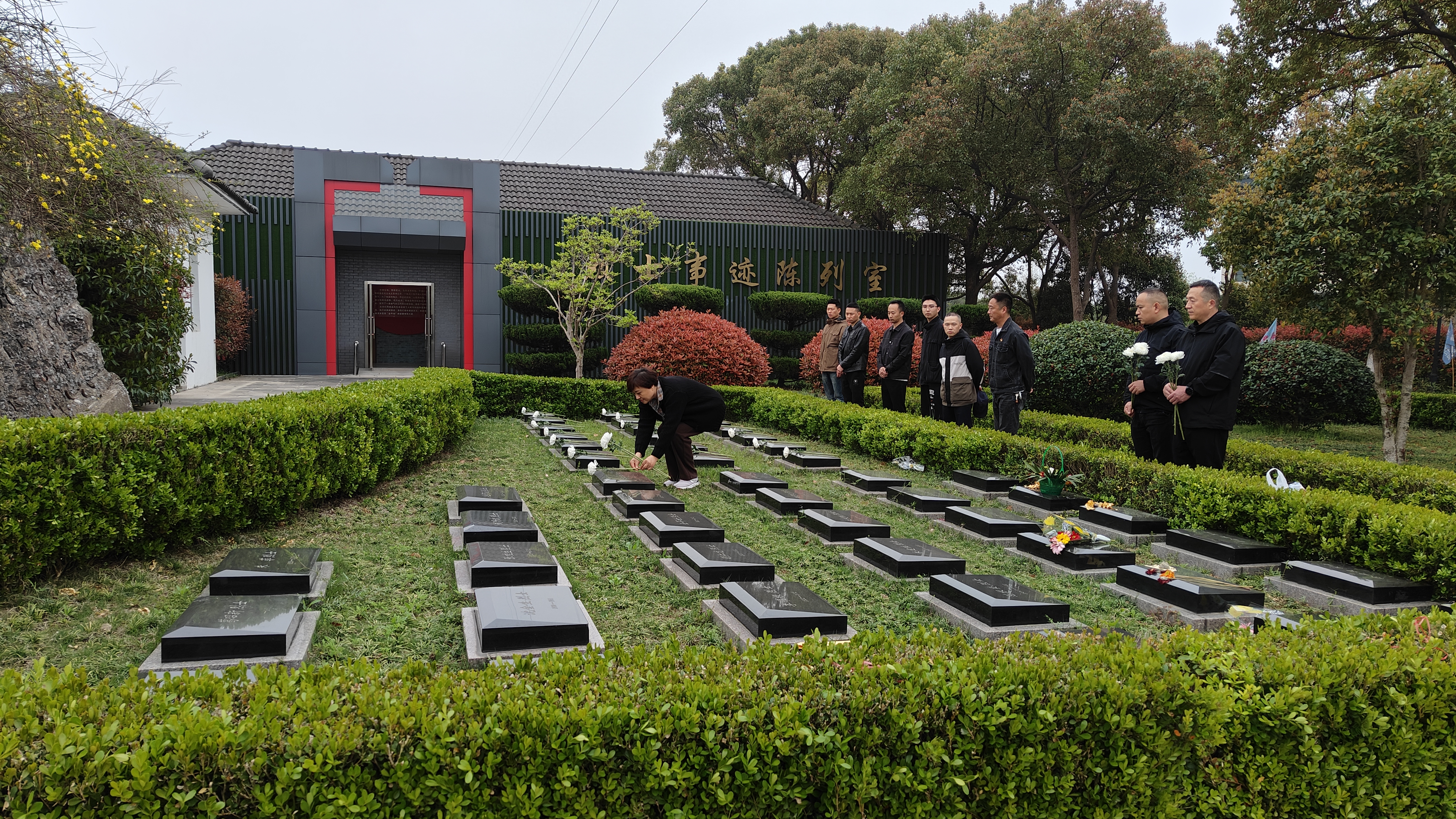 烈士陵園莊嚴肅穆,松柏蒼翠。黨支部副書記許光對平湖革命烈士紀念陵園做了簡要介紹。