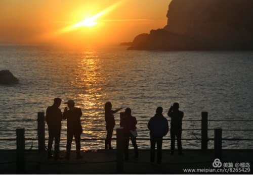 11月24日凌晨,大家揉著尚未瞳醒的雙眼,相約觀日出。太陽初升海平面時,火紅火紅的,照在波光磷磷的還海上,一遍金色,真是美極了。
