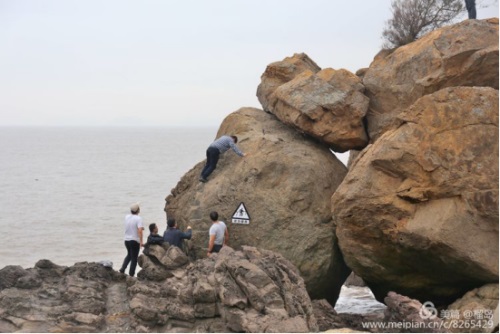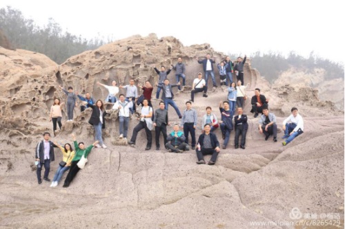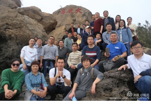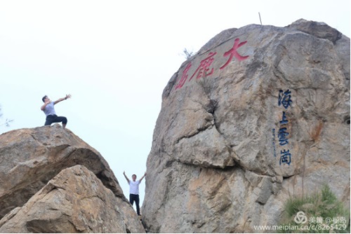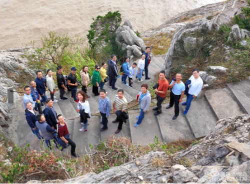 董事長李德進勇攀陡崖不畏難。懸崖頂上彎弓射大雕,彰顯男子漢的神力。在劉海粟先生題字“大鹿島”前留個集體照,個個都是攀登險境的先鋒。