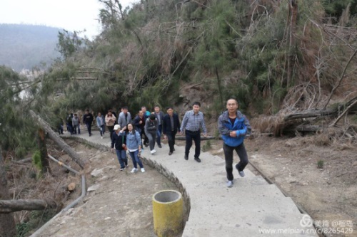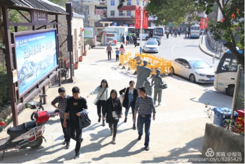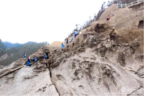 大家跟隨李董沿著石頭臺階趕著下一個景點,猛聽項光躍主席站在崖頂的喊聲,大家一致回首時,被項主席抓拍的瞬間,一個個笑的多么開心。