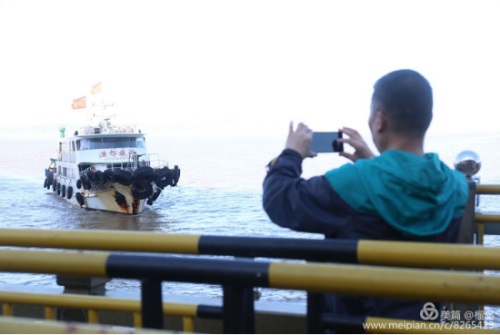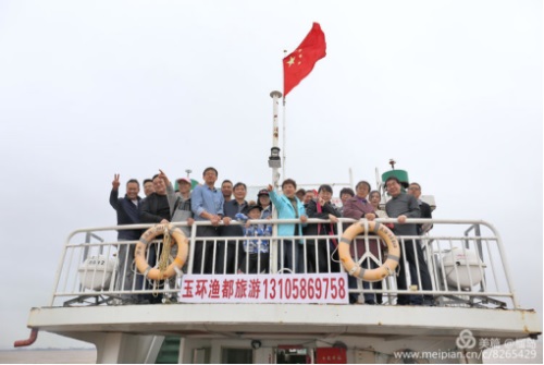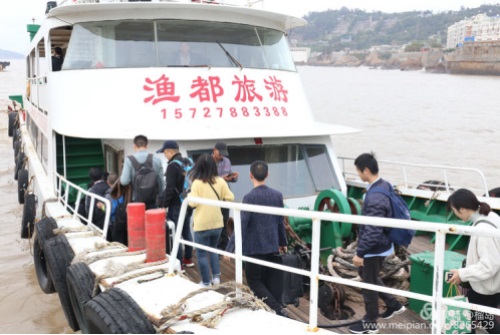 時光冉冉,早餐后,我們懷著依依不舍的心情,背起行囊要乘船返航玉環坎門了。接送我們返航的漁船:“漁都”號,向我們駛來。
