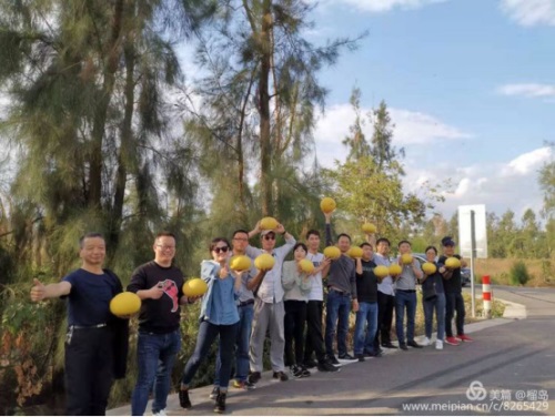 年輕人在一起就是好,永遠不服輸,瞧,大家在比試誰摘的文旦大且重。最后來一張手捧文旦大PK照。